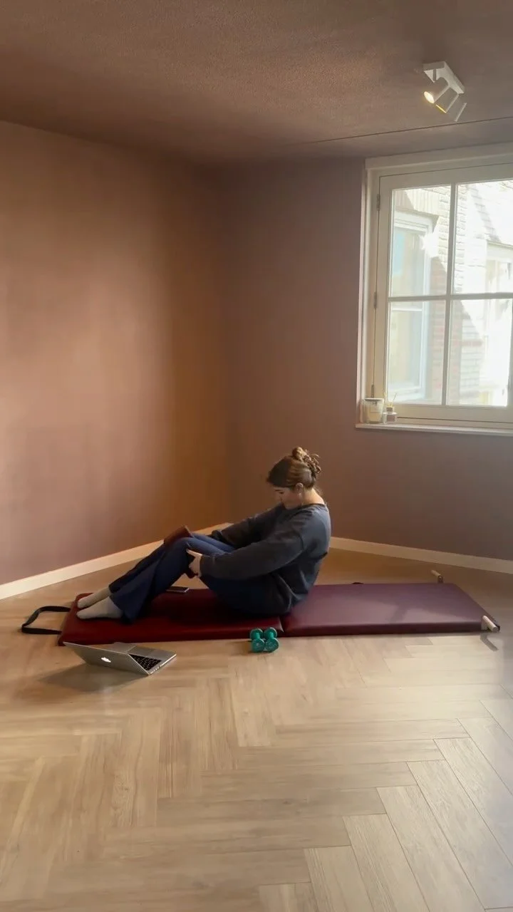 Draag comfortabele, ademende kleding die je bewegingen niet belemmert. Sportschoenen zijn niet nodig, omdat we Pilates meestal op blote voeten doen. Een sportlegging en een comfortabele top zijn ideaal voor de oefeningen.